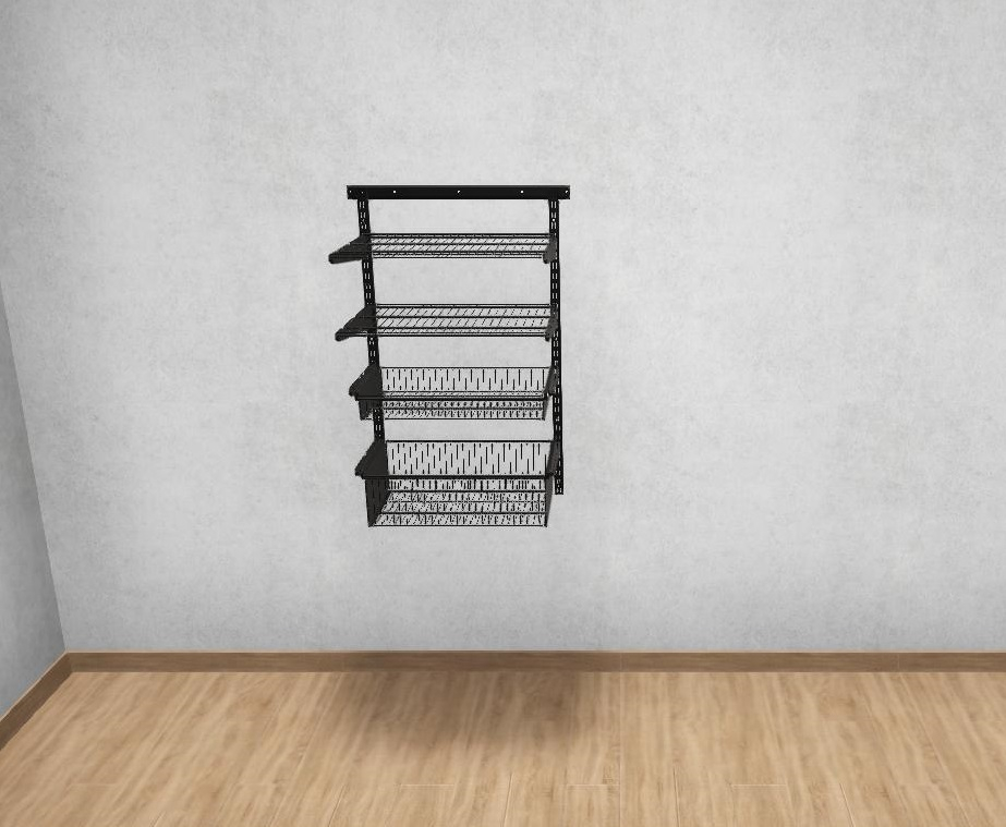 Базовый комплект гардеробной системы GS - это готовое решение для квартиры, дачи, гаража, обеспечивающее удобное хранение вещей. Система собирается в 6 разных конфигурациях, что позволяет подстраивать ее под размеры помещения и ориентироваться на личные пожелания по расположению отдельных элементов. В комплект входят несущие рельсы и навесные направляющие, полки, штанги, аксессуары, крепежные элементы. Можно докупить множество дополнительных компонентов для гардеробной системы.