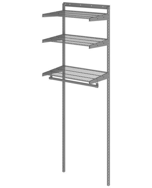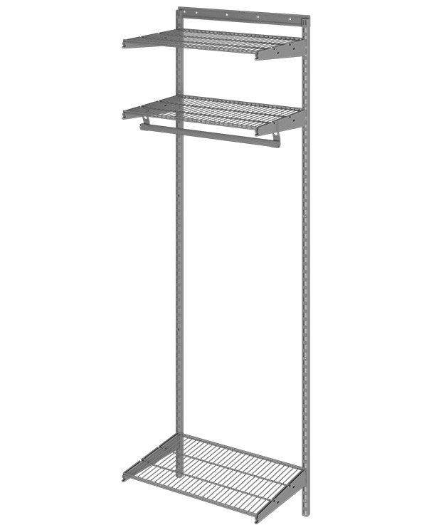 В комплект входят несущие рельсы и навесные направляющие, полки, штанги, аксессуары, крепежные элементы. Можно докупить множество дополнительных компонентов для гардеробной системы.