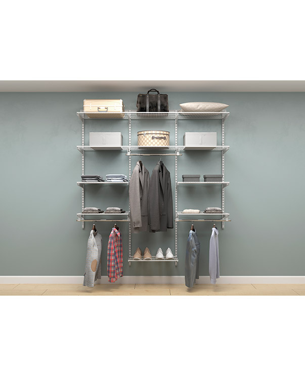В комплект входят несущие рельсы и навесные направляющие, полки, штанги, аксессуары, крепежные элементы. Можно докупить множество дополнительных компонентов для гардеробной системы.