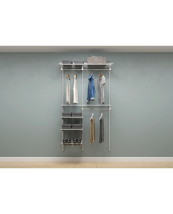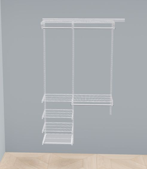 В комплект входят несущие рельсы и навесные направляющие, полки, штанги, аксессуары, крепежные элементы. Можно докупить множество дополнительных компонентов для гардеробной системы.