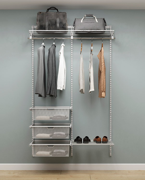 В комплект входят несущие рельсы и навесные направляющие, полки, штанги, аксессуары, крепежные элементы. Можно докупить множество дополнительных компонентов для гардеробной системы.