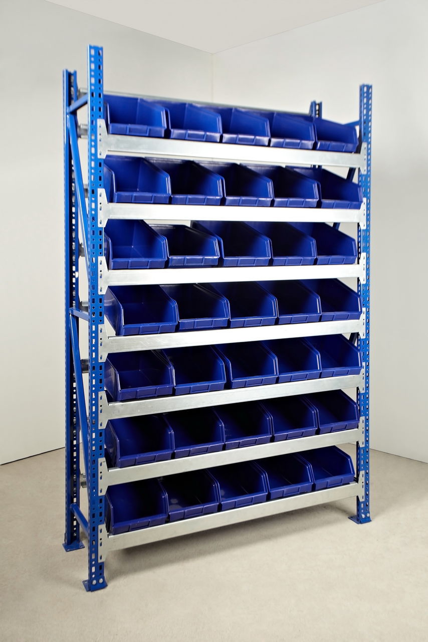 Стоимость стеллажа указана без учёта стоимости пластиковых ящиков.