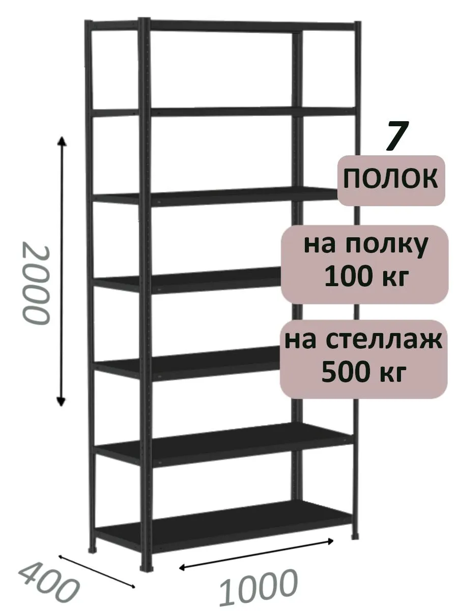 Стеллаж MS Standart 200х100х40, 7 полок, чёрный