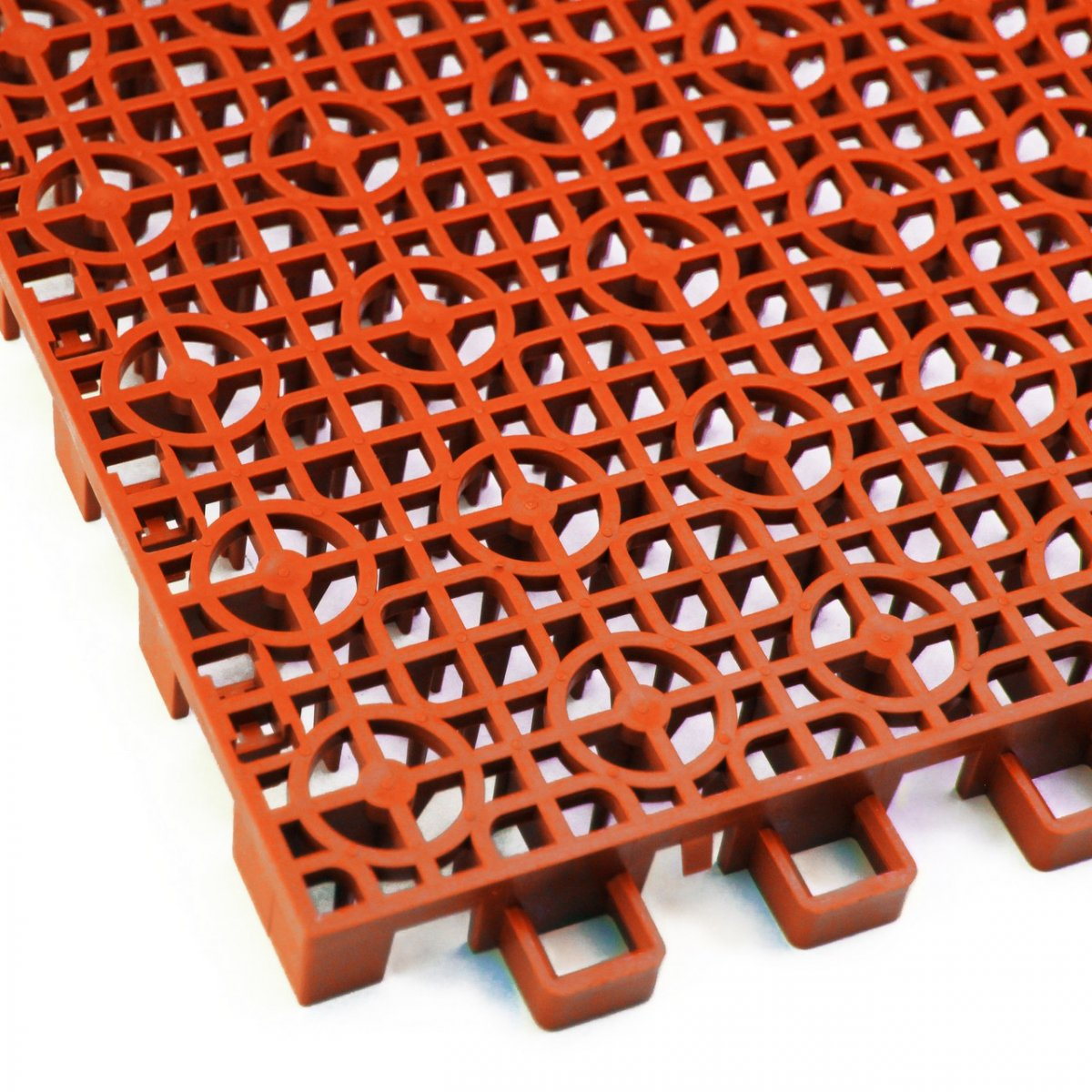 Покрытие «Клевер-Спорт» оснащено замковой системой, которая исключает разъединение модулей и препятствует изменению размеров при перепаде температур.