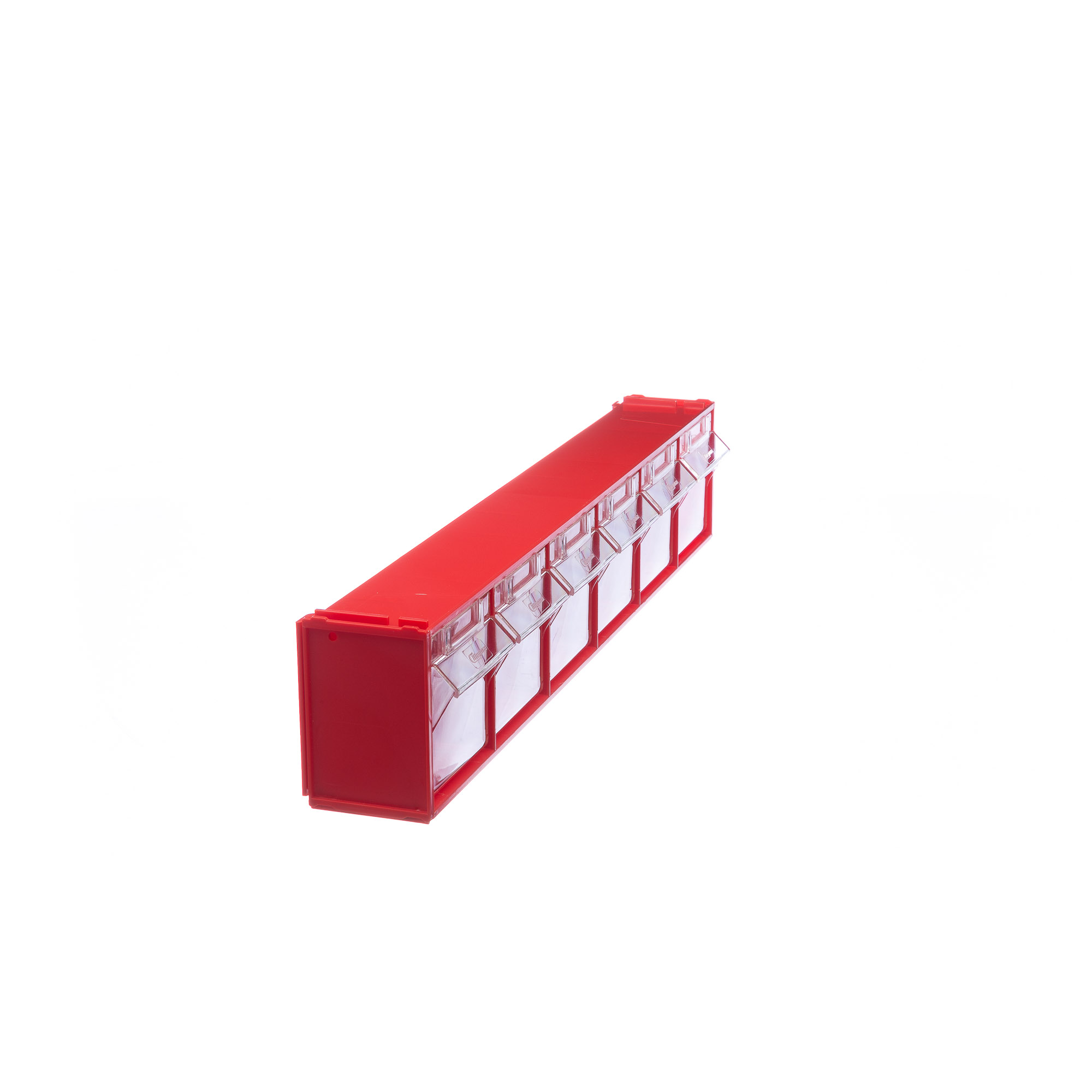 Короб откидной F-600-6, 600х94х112мм, 6 ячеек, красный, прозрачный