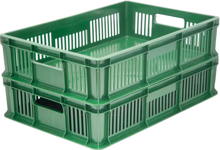 Пластиковые ящики, размерами 600х400 мм, универсальные штабелируемые с перфорированными стенками и дном. Ящики используются на пищевом производстве, в складском хранении, логистике. Самое широкое распространение ящик получил в хлебной отрасли.