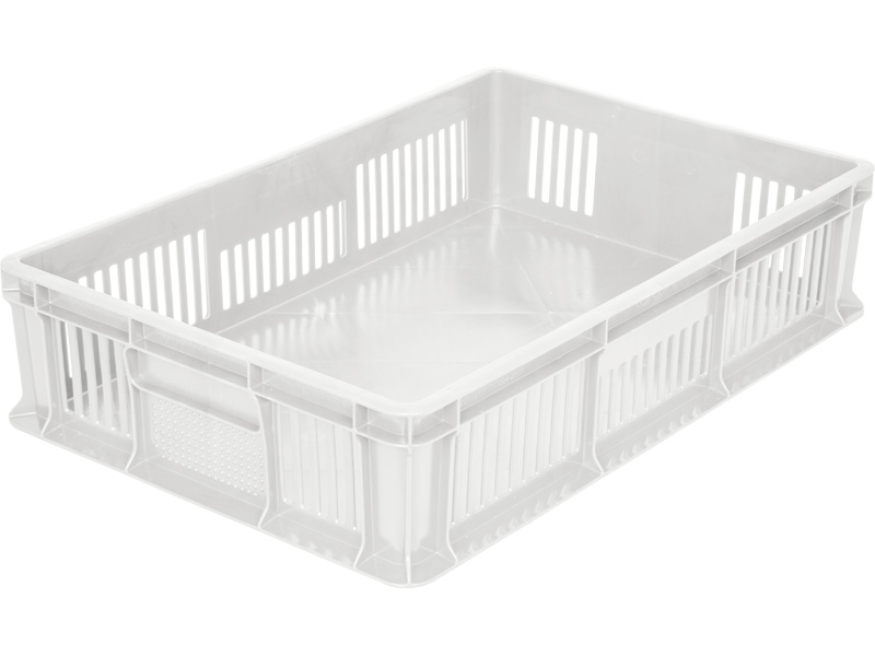 Пластиковые ящики, размерами 600х400 мм, универсальные штабелируемые с перфорированными стенками и дном. Ящики используются на пищевом производстве, в складском хранении, логистике. Самое широкое распространение ящик получил в хлебной отрасли.