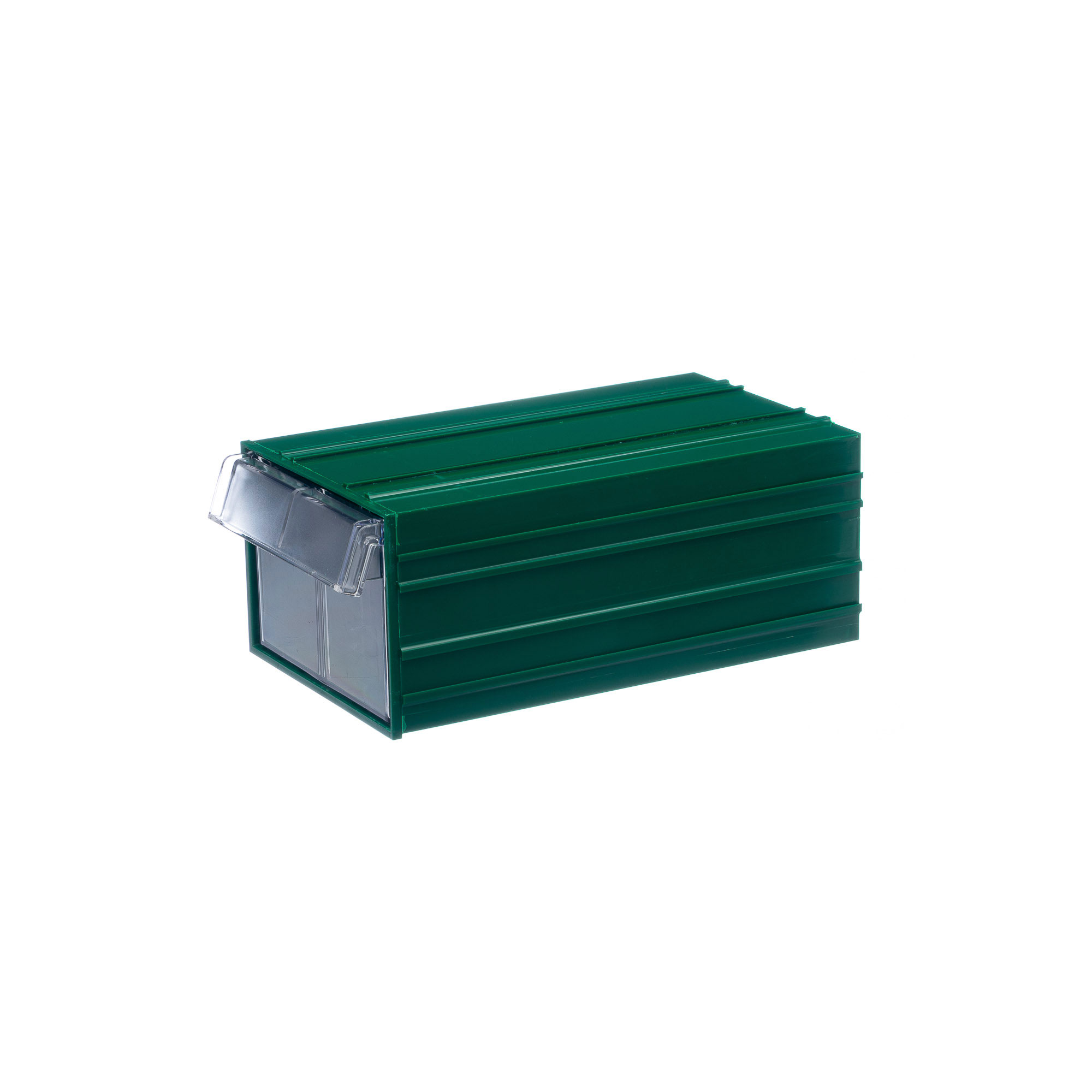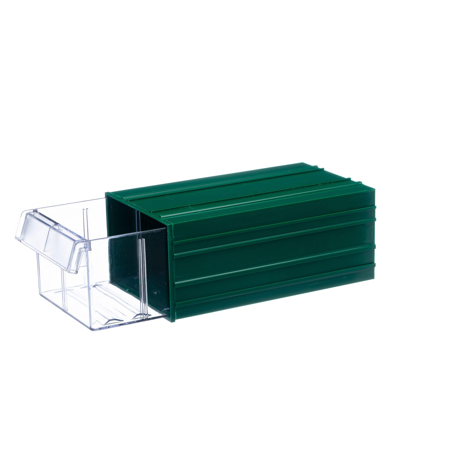 Пластиковый короб Стелла-техник С-2 зеленый-прозрачный. Пластиковые короба С-2 с выдвижными ящиками изготовлены из полистирола и предназначены для хранения мелкоштучных изделий и комплектующих. Габаритные размеры короба С-2 140х250х100мм. (ШхГхВ). Короб – синий, выдвижной ящик – прозрачный. Снаружи короб имеет специальные пазы, с помощью которых короба можно скреплять между собой. Благодаря этому возможно конструирование коробов в модули разных размеров, в зависимости от планируемого месторасположения. Прозрачные выдвижные ящики обладают двумя преимуществами: во-первых, позволяют быстро находить товары; во-вторых, обеспечивают контроль над полнотой содержимого. Короба контейнеров для складского хранения С-2 имеют рельефную структуру днища и усиленные толстые стенки. За счет этого изделия справляются с достаточно высокими эксплуатационными нагрузками. Технические характеристики короба С-2 Высота 100 мм. Длина 232 мм. + 18 мм. выступ ручки Ширина 140 мм. Внутренние полезные размеры выдвижного короба 220х123х80 мм. Возможность установки 1 продольной перегородки (артикул: С-2 продольная) или до 3-х поперечных (артикул: С-2 поперечная). Продольная и поперечная перегородки одновременно не устанавливаются. Перегородки в комплект короба не входят и поставляются отдельно. Рекомендуемая нагрузка на короб не более 3 кг.