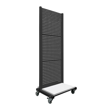 Стойка подкатная универсальная СПФ используется для хранения и перемещения инструментов, материалов и комплектующих в рабочем пространстве. С помощью крючков для инструментов КР на подкатной стойке возможно разместить различный инструмент: отвертки, пинцеты, сверла, гаечные и шестигранные ключи, пассатижи, молотки и киянки, канцелярские принадлежности и другой ручной слесарно-монтажный инструмент. В стандартной комплектации стойка поставляется в комплекте с панелью перфорированной ППМ (3 шт.). Возможно зеркальное (двухстороннее) размещение перфопанелей. Крючки для инструмента возможно подобрать в разделе «Дополнительное оснащение рабочих мест». Стойка мобильная имеет металлический каркас окрашенный порошковой краской.