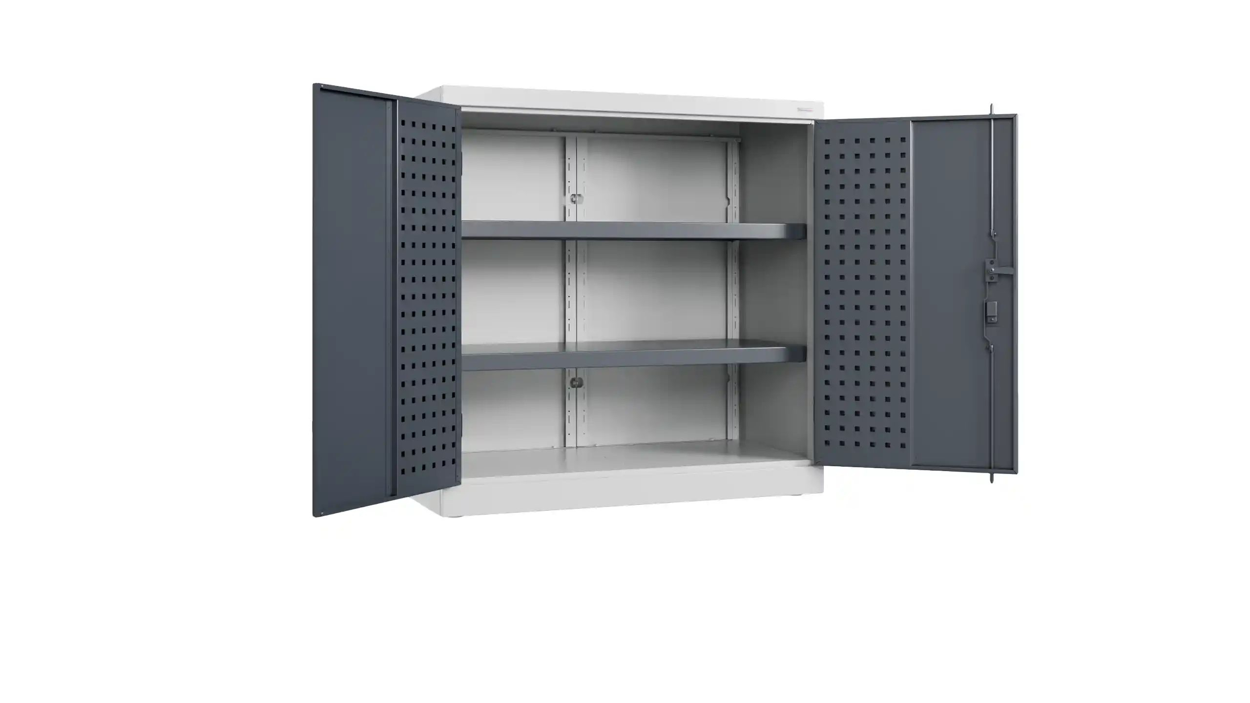 Шкаф антресольный инструментальный Fabrik тяжёлой серии представляет собой сборно-разборную конструкцию, предназначен для хранения оснастки, приспособлений и инструмента в мастерских, цехах и других производственных зонах. Шкаф изготовлен из листовой стали, имеет ригельный замок обеспечивающий надежное запирание дверей.