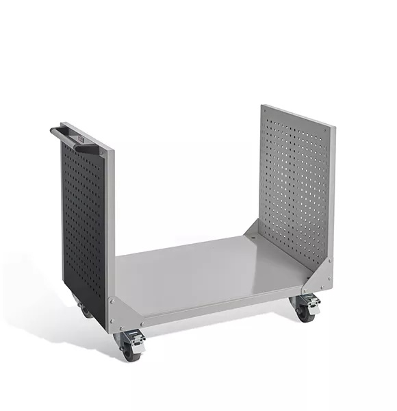 Боковые стенки представляют собой двойные перфорированные экраны. С внешней стороны тележки на них можно установить аксессуары к экранам — лотки, держатели инструмента и т.д. Между экранами можно установить ВС полку или специальную раму для держателей инструмента. Максимальная нагрузка на полку — 200 кг.