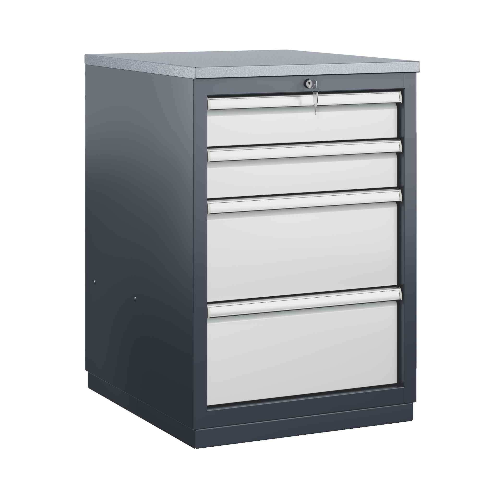 На каждой ручке ящика и двери закреплен специальный алюминиевый профиль с отделением для установки маркировки. На тумбы с выдвижными ящиками установлена система антиопрокидывания, которая ограничивает выдвижение остальных ящиков тумбы, если один из ящиков выдвинут. Тумбы снабжены центральной системой запирания.