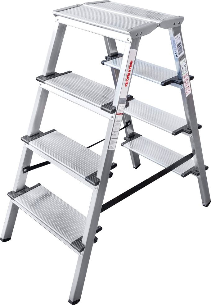 Чтобы уточнить цену и заказать доставку Стремянка алюминиевая двухсторонняя со ступенями 130 мм и площадкой 350х260 мм NV1127..4 в , звоните по телефону или закажите обратный звонок.