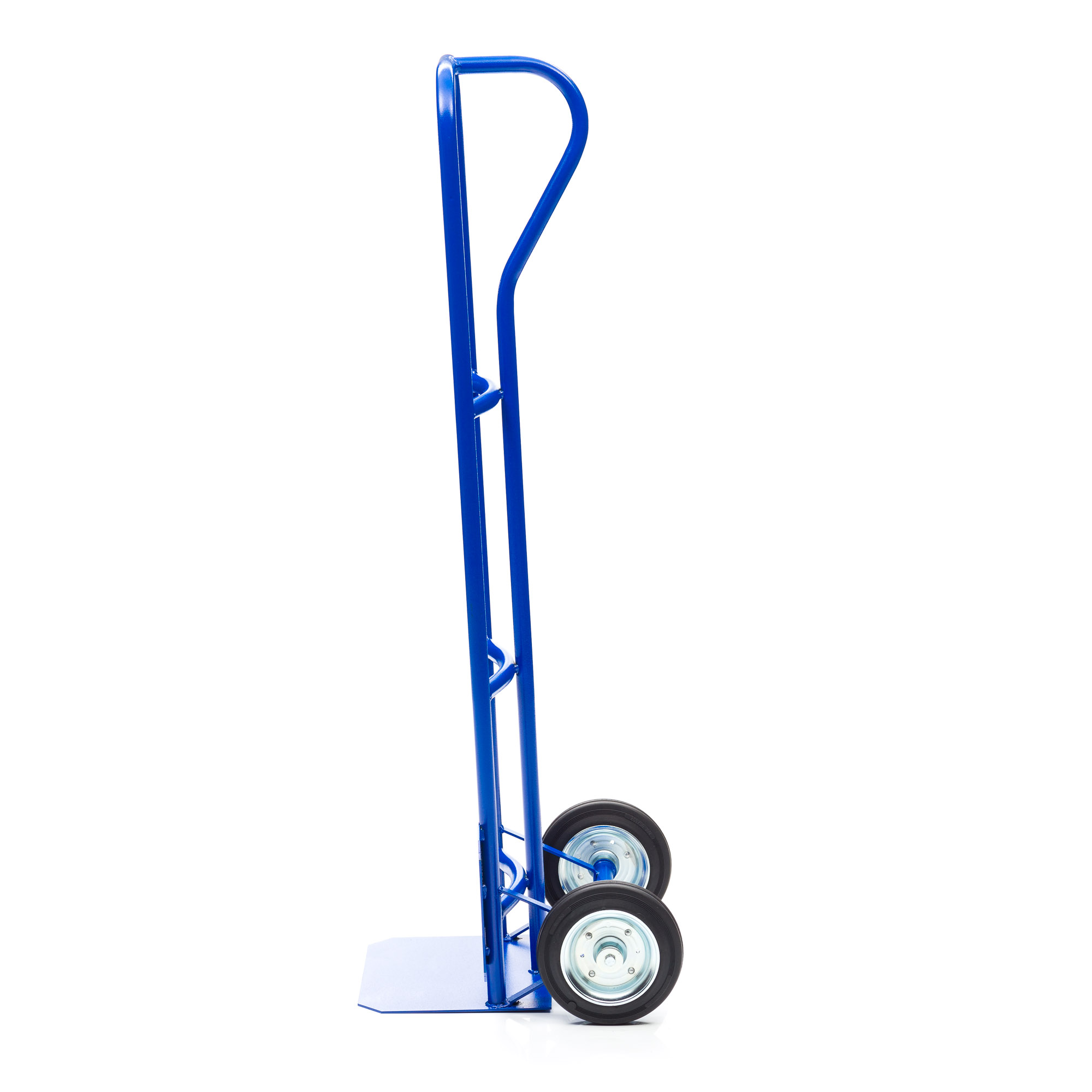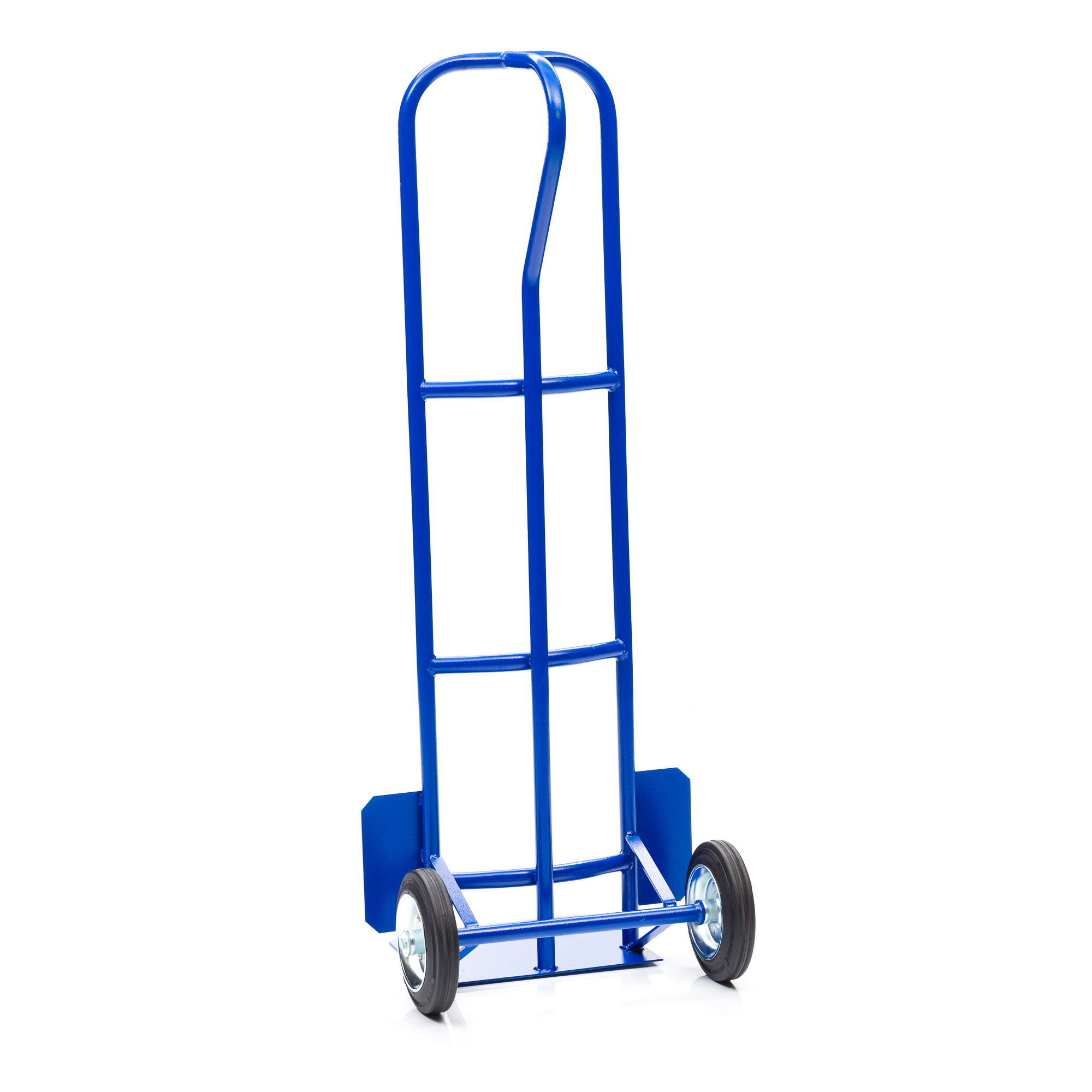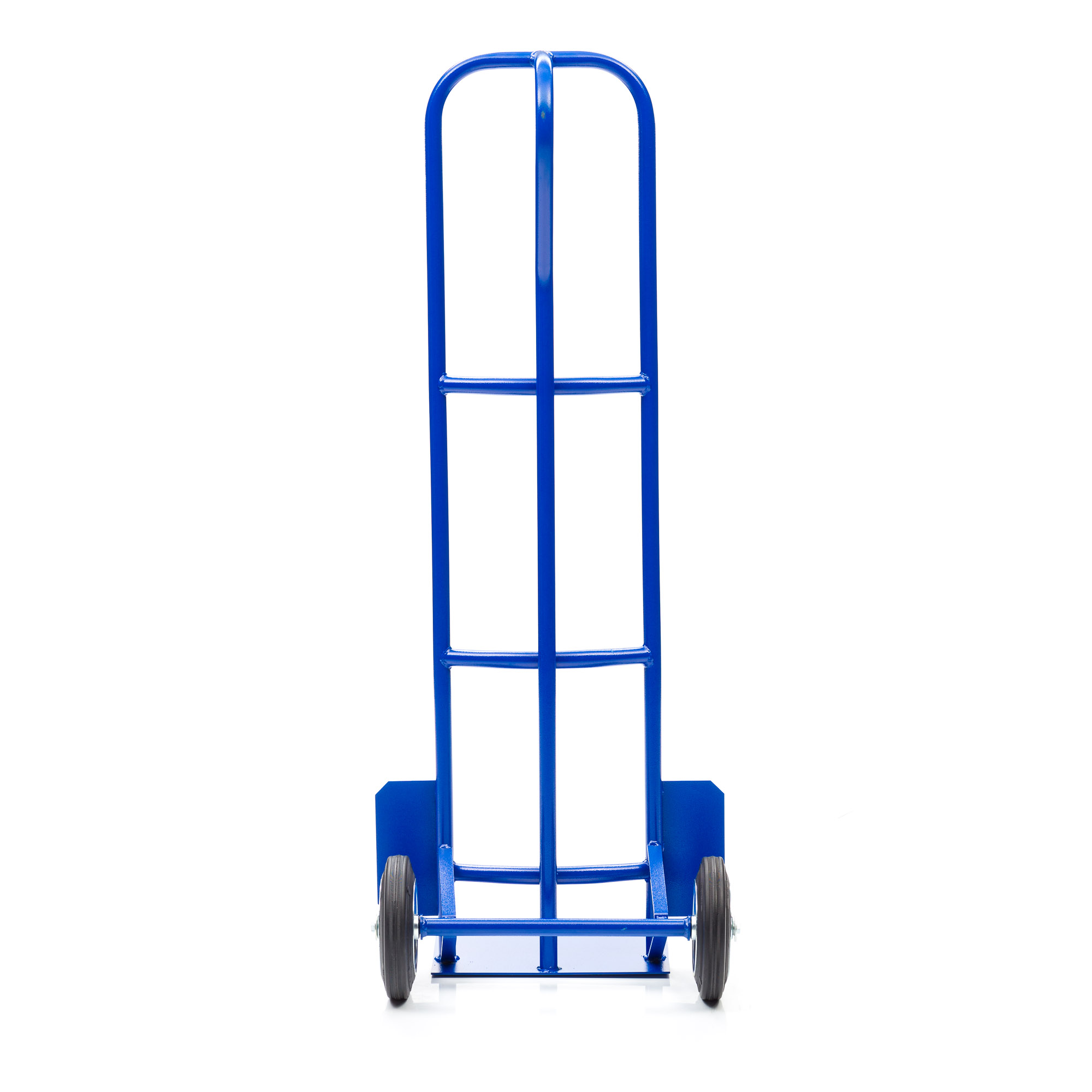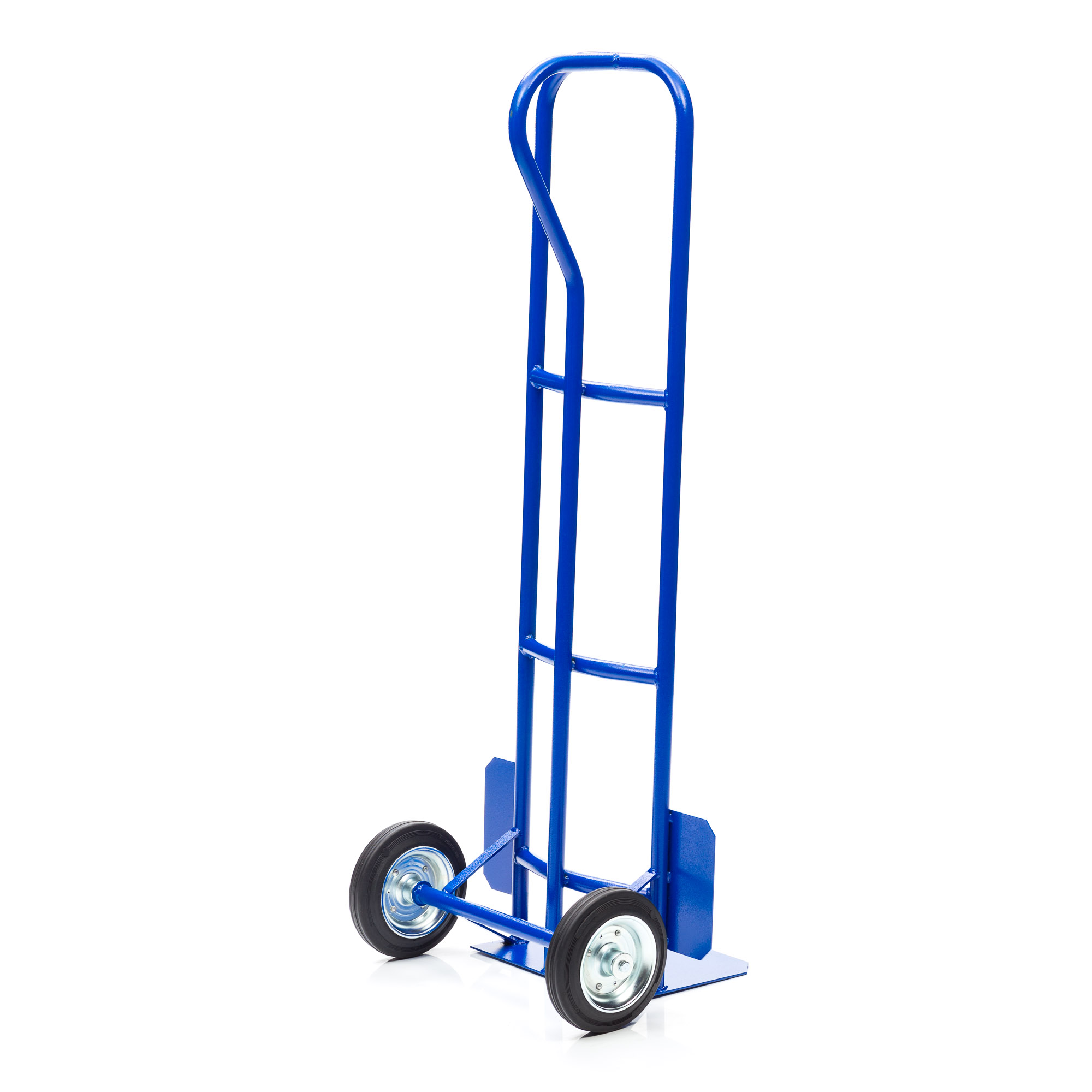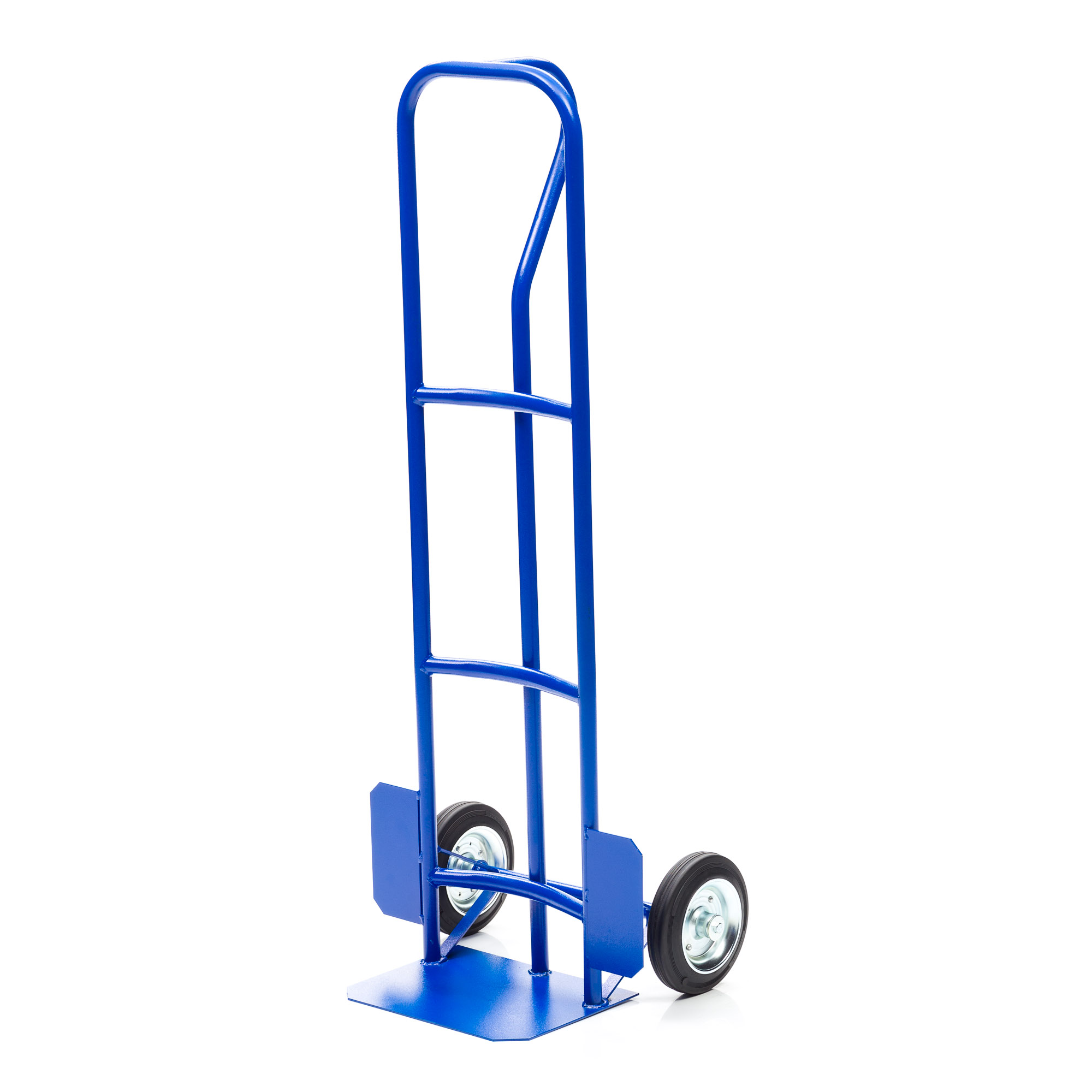 Грузовая 2-х колесная тележка КГ-3 с одной ручкой используется для транспортировки различного малогабаритного груза весом до 200кг. на небольшие расстояния. Каркас тележки изготовлен из металлической трубы диаметром 25мм., толщиной 1,5мм. и покрыт полимерной краской для предотвращения воздействия коррозии. Грузовая площадка размером 350х280мм. обеспечивает устойчивое и надежное положение груза при транспортировке. Площадка выполнена из листа металла толщиной 4мм. Покрытие полимерное. Цвет синий, шагрень. Тележка комплектуется колесами из высококачественной резины.