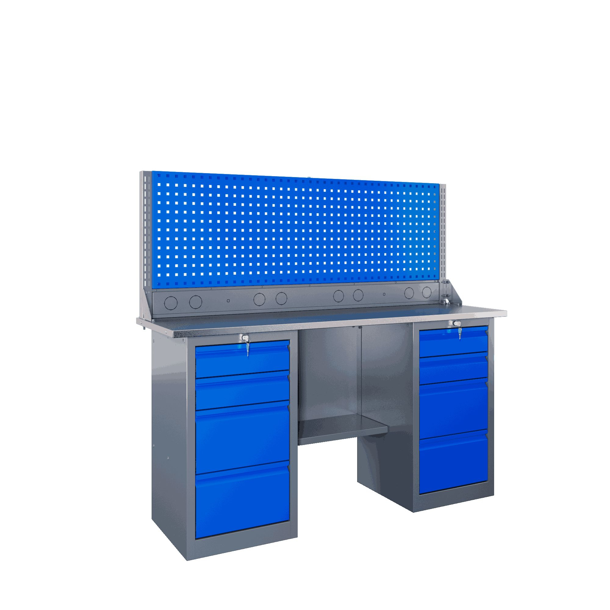 Самые компактные верстаки с глубиной столешницы 500 мм. Благодаря небольшой глубине, такие верстаки легко размещаются в ограниченных пространствах, например, в гаражах, мастерских и тд. Несмотря на компактные размеры, верстаки могут быть оснащены полками, ящиками и держателями для инструментов, что помогает поддерживать порядок и быстро находить нужные предметы.