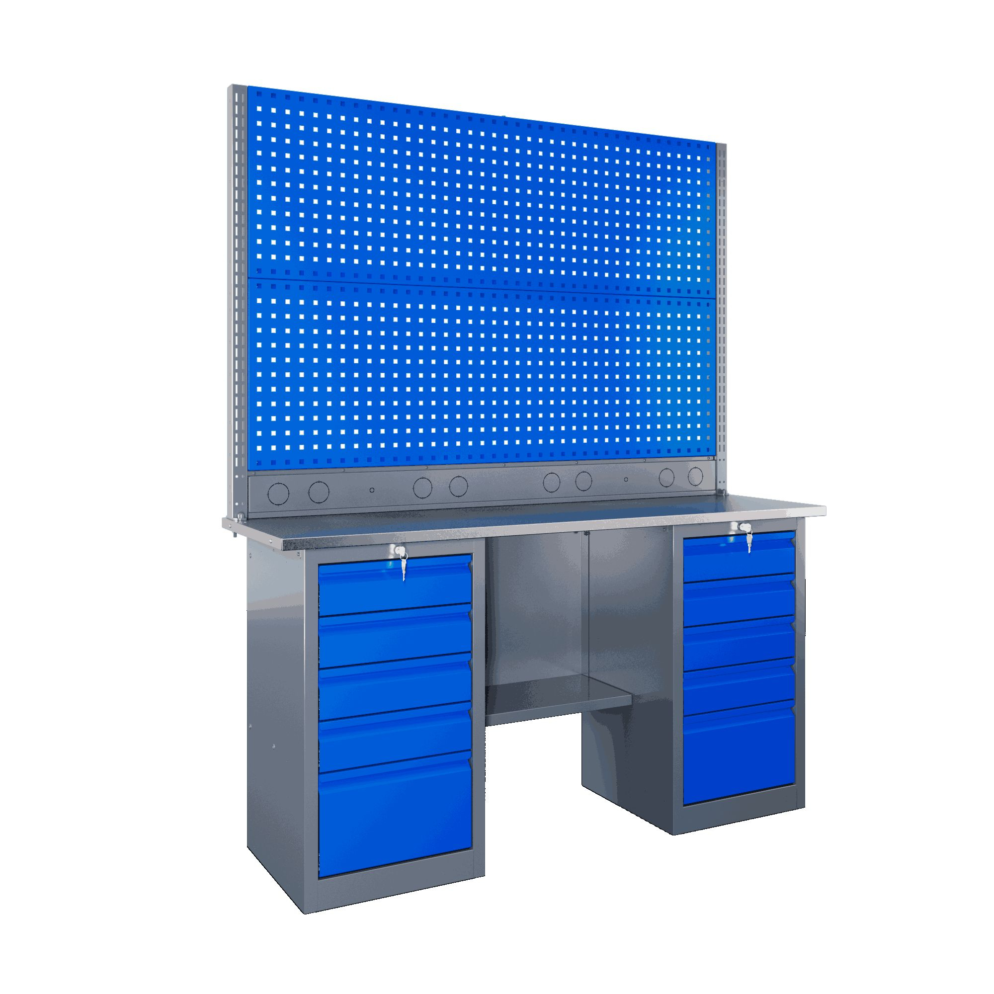 Самые компактные верстаки с глубиной столешницы 500 мм. Благодаря небольшой глубине, такие верстаки легко размещаются в ограниченных пространствах, например, в гаражах, мастерских и тд. Несмотря на компактные размеры, верстаки могут быть оснащены полками, ящиками и держателями для инструментов, что помогает поддерживать порядок и быстро находить нужные предметы.