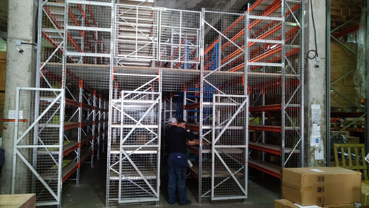 Мезонин для полочного хранения запчастей, настил ДСП.